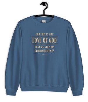 A sturdy and warm “For this is the Love of God that we keep His commandments” Christian sweatshirt bound to keep you warm in the colder months. A pre-shrunk, classic fit sweater that’s made with air-jet spun yarn for a soft feel and reduced pilling.