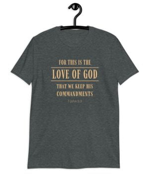 You’ve now found the staple “For this is the love of God, that we keep his commandments” Christian t-shirt of your wardrobe. It’s made of 100% ring-spun cotton and is soft and comfy. The double stitching on the neckline and sleeves add more durability to what is sure to be a favorite!