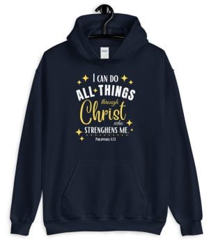 Feeling overwhelmed with problems and difficulties? This Christian hoodie is supposed to remember you that we can do all things through Christ. We don’t have to make it through life all alone.
