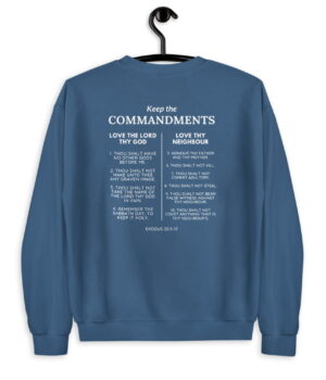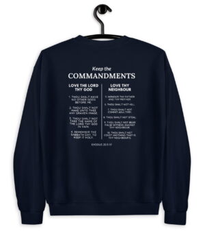 The 10 commandments are God’s way to express His love for us. Unlike how many people nowadays believe they are not meant to oppress us but rather assure us a healthy and long life. They are not only a guideline to a relationship between God and men but also His people. Most laws in society are based on the 10 commandments. And so we from My Faith Store can only emphasize it over and over again with this Christian sweatshirt: Keep the commandments.